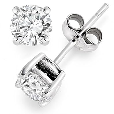 3/4 Carat Solitaire Diamond Earrings 14K White Gold Push Back (0.72 Carat J Color I1 Clarity)